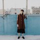 ヴィンテージ/イタリアをお過ごしください。ヴェロニク茶色茶色のベルベットの襟のコートのダブルライフ