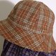 【ヴィンテージ帽子/チェック柄レンガオレンジヴィンテージ帽子]