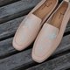 アッパーには柔らかなアプリコットピンクのカーフレザーを使用。
