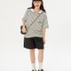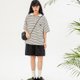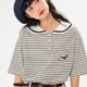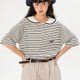 - オッドメーカー日本ネイビーカラールーズポロカラーTシャツレディースストライプ七分袖カジュアルラウンドネック半袖