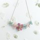 湖の青+赤豆のペーストは、紫色のアジサイ+(本物の花)/ 18Kゴールドチェーンバー/アクセサリージルコン/スワロフスキーフラットダイヤモンドを淡
