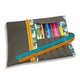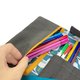 ●右側のペンスロットにはよく使うペンを分けて入れることができ、側面のジッパー層には定規、消しゴム、ホワイト、ノート、メモなどペンの形以外の文具を収納できます。適切なサイズに合わせて丸めて固定することができます。