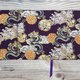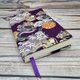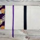 ブックカバーは紫色の龍の模様が入った綿布製です。ブックカバーの内側は無地の生地でダブルステッチされています。中にはしおりとなるパープルのリボンも付いています。