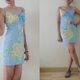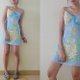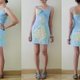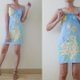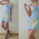 • 鮮やかなイエローの花柄がプリントされた、明るいブルーのキャミソールミニドレス。キュートでハワイアンスタイルのデザインで、全体に裏地が付いています。