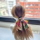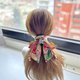 アメリカブランドのコットン生地を使用し、長めのリボンとサテンリボン、そしてビーズをあしらったヘアゴムは、上品でロマンティックな雰囲気を醸し出します。オフィススタイルにもカジュアルな集まりにも、シーンを選ばずお使いいただけます。