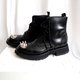 Size 41 famous brand Alexander McQueen black leather toe silver rivet mid-boots protective short boots.