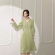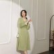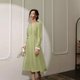 - ルネからバックボーンまでのロングワンピース フレンチVネックシンプル大気衝突色ワンピース 気質撞色継ぎ手袖純色ウエストワンピース 初秋ボタン装飾インナー長袖ワンピース