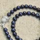 - 8–9mmの天然ディープブルー淡水パールに、シルバーの豹頭留め具を合わせた個性的なネックレス。力強さと上品さを兼ね備え、誕生日プレゼントに最適です。