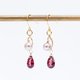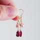 光を受けるたびにキラキラと煌めく雫形のガーネットに、柔らかな光沢を持つ淡水パールをあしらいました。