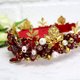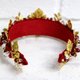 この赤と金のビーズの王冠はロイヤルスタイルで、ビーズ、クリスタル、パールが刺繍されています。ベースはベルベットでできています。