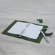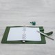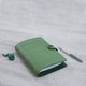 ●革製手帳の最下部のページは、筆記しやすいペン入れデザインになっています。 (注:写真のメモとペンは撮影専用であり、この製品と一緒に販売されていません)