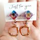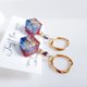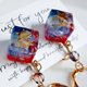 まるで夕暮れから夜に変わるトワイライト時間ような幻想的な雰囲気をぎゅっとレジンで閉じ込めたキューブをイヤリングの貼り付け台に付けてメインとして、そこに小さめのガラスビーズと飾りフープをシンプルに合わせたお洒落なイヤリングとなっております☆