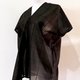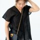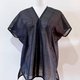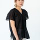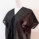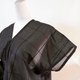 ほんのり透け感のある黒の生地を使用し、大きなグリッドが全体に落ち着いた空間を演出しています。特徴的なシルエットのインナーは、無地、ストライプ、柄物など、どんなアイテムとも合わせやすいデザインです。