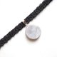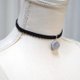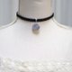 グレーとホワイトが美しいマーブル模様を描くレジンにシルバーの装飾を施し、ベルベットリボンにタティングレースで装飾を施したチョーカーに仕上げました。