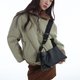 ミニマルなボックスシルエットの本体に、幅広のショルダーストラップで調整可能。