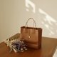 - 人気の紙袋デザインをモチーフに、本革で仕立てた折りたたみ可能なレザーバッグです。素材にはコシと耐久性のある牛革を使用し、カラーは落ち着いたブラウン。