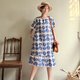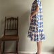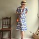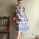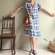 生如夏花/デザイナーオリジナルプリント リネンフリルヘム半袖ロングワンピース 100%リネン