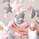 ベビーモバイルバニーベア子猫ムーンスターピンクとグレーの保育園