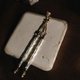 シルバーホワイトのロングチューブビーズが揺れ動く