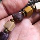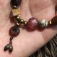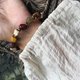 半分は卵黄に模様を入れ、ゴビ砂漠産の小さな石、葉模様のターコイズ、星に輝くストロベリークリスタルを組み合わせた、可愛らしい雰囲気のペンダントです。民族的な雰囲気と芸術的な雰囲気に満ちています。