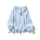 涼し気な雰囲気が魅力のリネン素材のブルゾン フード付き ライトアウター 薄い水色 230613-2