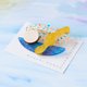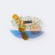 着彩してアクリルを重ね合わせた、アートピースのようなブローチ。