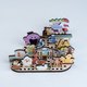 ガチャのモデルパーツは、建物、バウムクーヘン、アライグマです。