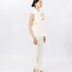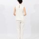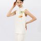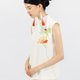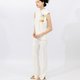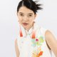 このノースリーブトップスは、クラシックなチャイナドレスを現代的に解釈したものです。ハイネックのデザインと優雅なAラインのシルエットが、ミニマルな現代感を演出しています。斜め開きのチャイナボタンのディテールが伝統的な要素を巧みに取り入れ、Yingによるオリジナル手描きデザインからインスパイアされたプリント柄は、繊細なアイボリーのベースカラーに柔らかな彩りを加え、女性らしい優美な雰囲気を漂わせます。