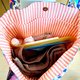内側の生地はピンクとクリーム色のストライプです。