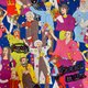 カラフルな洋服を着た偉人達が自分の人生を謳歌しているように見える、とても気分の上がる生地です。