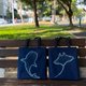 - 海シリーズに新しく仲間入りした、エイのバッグ。 縫い絞り染めとろうけつ染めを重ね合わせ、 深い青の海で一瞬すれ違った、あの時の感動を記録するためだけに。