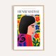 - 民族的な文様を纏った女性が横顔で佇み、背景には祝祭のように咲き誇る花々が壁一面に広がっています。この作品は、マティスのスタイルで民俗的な色彩と現代的な肖像画を融合させ、豊かな色彩と奔放な構図が、秘めた感情の中の視覚的な緊張感を表現しています。リビングルーム、芸術展示スペース、または空間のアクセントとして、濃厚な文化的雰囲気と芸術的なリズムを吹き込みます。