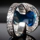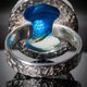深い青色の琥珀の美しさと、シルバーの輝きが融合した、このユニークなリング。一つ一つ丁寧に、細部までこだわり抜いて手作りされています。シルバーの細片が繊細なきらめきを添え、リングを特別な存在にしています。ご自身へのエレガントなアクセサリーとして、また大切な方への贈り物にも最適です。