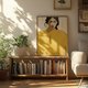 「黄土色の女」は、鮮やかなイエローイエローをメインビジュアルに採用し、力強くも控えめな存在感を醸し出しています。登場人物の表情は柔らかでありながらもしっかりとしており、全体像は現代女性の静かな力強さと精神的な気質を表現しています。ミニマル、文学、和風の空間スタイルによくマッチします。