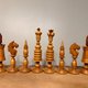 - ロシアのオリジナルのレアなチェスセット、1990年代から2000年代モデルはKADUN製の«Barleycorn»と呼ばれています。両方の部分ともブナの木で作られています。全体的に素晴らしいヴィンテージコンディション。自然のまま。チップはありません。写真をご覧ください。木材からユニークに作られています。重み付け。キングの身長は8センチです。適合ボード: 40*40 / 45*45 cm / 50 * 50 cm