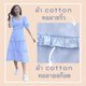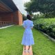 原材料:コットンオックスフォード織り生地、ストライプ柄、パステルブルー、同じ生地で装飾、小さなチェック柄
