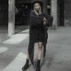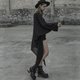 山本耀司風の、すらりと見せる逆三角形のシルエット。