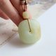 天然和田翡翠平和バックルペンダント、新疆ウイグル自治区の古い素材、ゴビ和田翡翠、非常に厚い脂肪、美しい色、絶妙な沈香の手作りロープ、古代のアクセサリー、仕様は約35x33.5x16.2mm