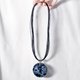ペンダントトップは**吉祥回紋と唐草紋**をデザインの主軸とし、ホワイトゴールドで製作され、繊細で奥ゆかしいラインが特徴です。ブラックの**FRP(強化プラスチック)**多連チェーンと組み合わせることで、控えめながらもブルーピーターサイトのメインペンダントの荘厳な存在感を際立たせています。