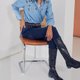 【I'care】M字ハイストレッチスリムデニムパンツ