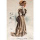 [アートとファッション]のイラストのコレクションはすべて、20世紀初頭のアールヌーボー時代の製品です。 1890年以降の婦人服の新しいトレンドが維持されていることがわかります。すべての種類のスカートサポートは使用されていません。スカートは自然に垂れ下がっています。ラムシャンクスリーブまたは膨らんだ袖(袖はラムシャンクのような形をしています、上端)が開いていて、手首の近くの部分を締めてから)を締めて、視力の焦点にします。大きめの袖はフラットなAラインのロングスカートに、全体的な視覚効果でウエストを細く見せてくれます。同時に、新しいチョッキの助けを借りて、婦人服の新しいシルエットが登場しました。「Sカーブ」は、薄くすることのできないスリムなウエストを作成することでもあります。