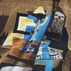 「三人の音楽家」は、ピカソの合成キュビスム様式を体現する重要な作品です。この様式は、平坦な色の面と、切り紙細工のように見える複雑でパズルのような構成が特徴です。1921年に制作されたこの絵画は、ピカソの後期キュビスム時代の最も象徴的な作品の一つです。