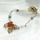 素材:銅に14Kゴールドメッキ、日本製樹脂、タンザナイト、天然パール、ホワイトクォーツ