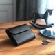 小さくすることを念頭にデザインされたので札入れ、コインケース、カードは本体背面、コインケース蓋裏、カード段に2枚分が入るスペースがありちょっとした外出時にポケットにも余裕で入る小さな財布。