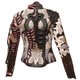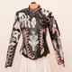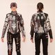 このジャケットは、椎骨の板、肋骨、抽象的な「有機的」な形状を思わせる、凸状のエンボス加工や縫い付けられたディテールで装飾されています。