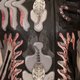 黒、グレー、白、ピンクの配色が、革、金属、そして生きた組織の融合という効果を生み出しています。