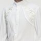 スタンドカラーのフリル、紳士的なランタンスリーブ