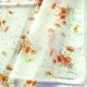 ヴィンテージのハンカチです。上質な織りコットン、軽量な生地で作られており、繊細なフローラルプリントが特徴です。小さな花々が柔らかなベージュの背景に咲き、スカラップ状のグリーンの編み込み縁取りがエレガントな雰囲気を添えています。とても可愛らしいです。♡ スタイリッシュなアクセサリーとして、または心のこもったギフトとしても最適です。