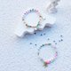 一つ一つのビーズに込められた想いを紡ぎ、特別な意味を持つ言葉を表現したり、明るいマカロンカラーのビーズを連ねて、甘くカラフルなアクセサリーを作り上げたり。最後に天然石を添えることで、全体の質感を高めます。