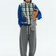 このアイテムは、異なる素材の組み合わせによって、生地の質感の視覚的なコントラストを際立たせています。